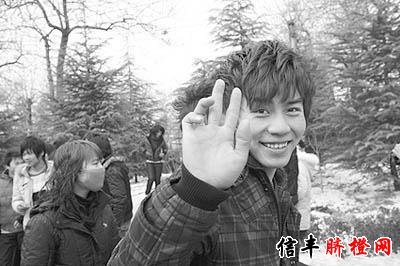2010年2月14日,一群新生代农民工来到河南省永城市芒砀山旅游景区聚会,图为一名参加聚会的打工青年。 王勇摄